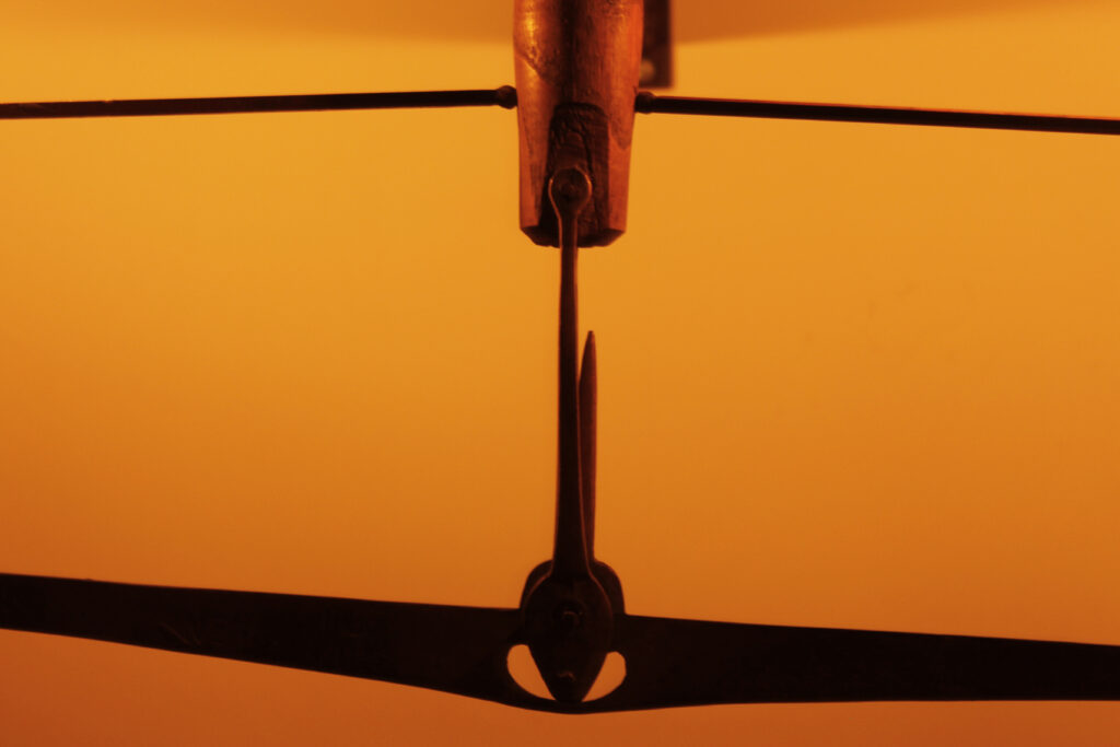 Laiton, bois, acier et cire incandescente.
