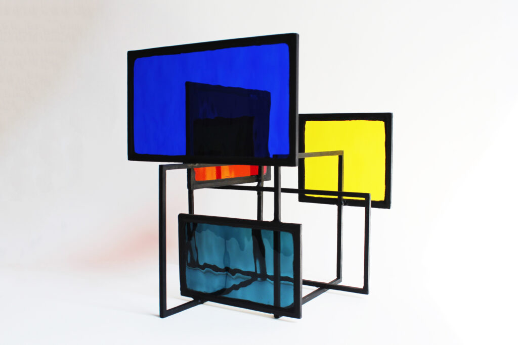 Acier, verre et acrylique.